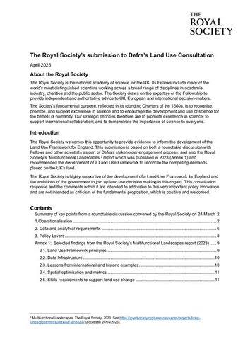 The submission highlights the need for a joined-up, long-term vision for land use across the UK, addressing challenges such as food security, biodiversity loss, infrastructure planning, and climate resilience. Drawing on expert input, the response explores operational design, data requirements, policy levers, and the skills needed to deliver a multifunctional, sustainable approach to land use.
